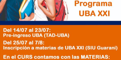 C.U.R.S.: INSCRIPCIÓN ABIERTA AL PROGRAMA UBA XXI de la UBA